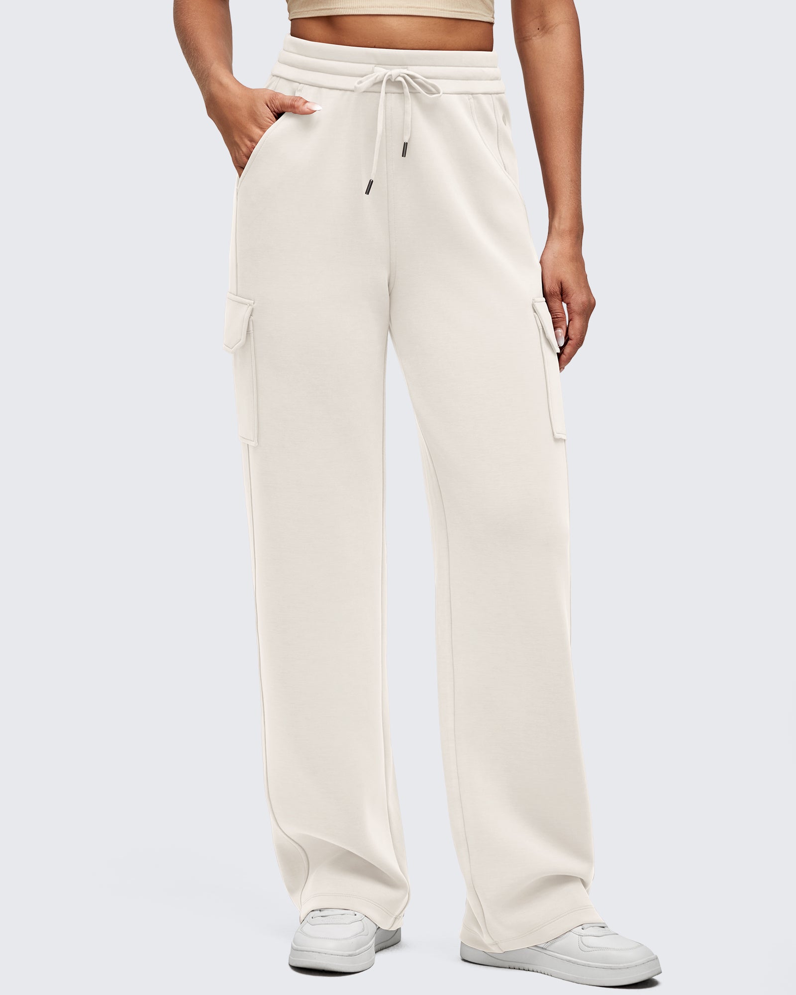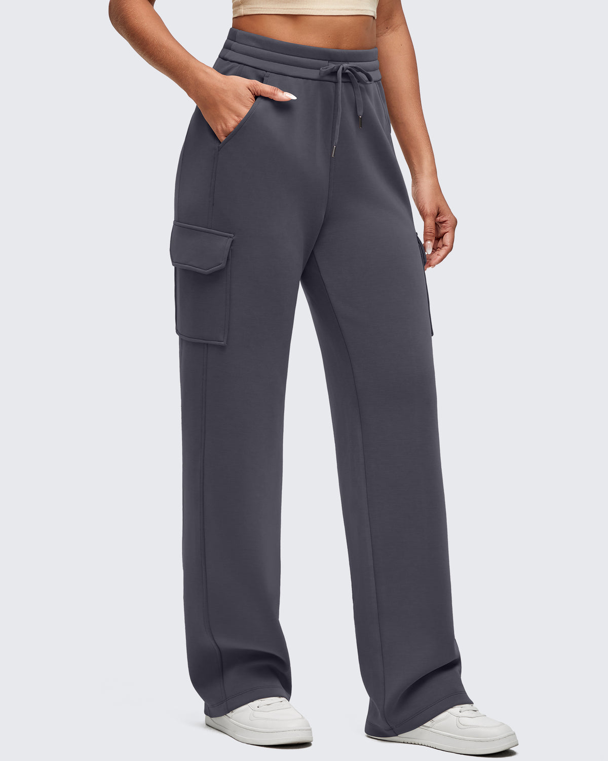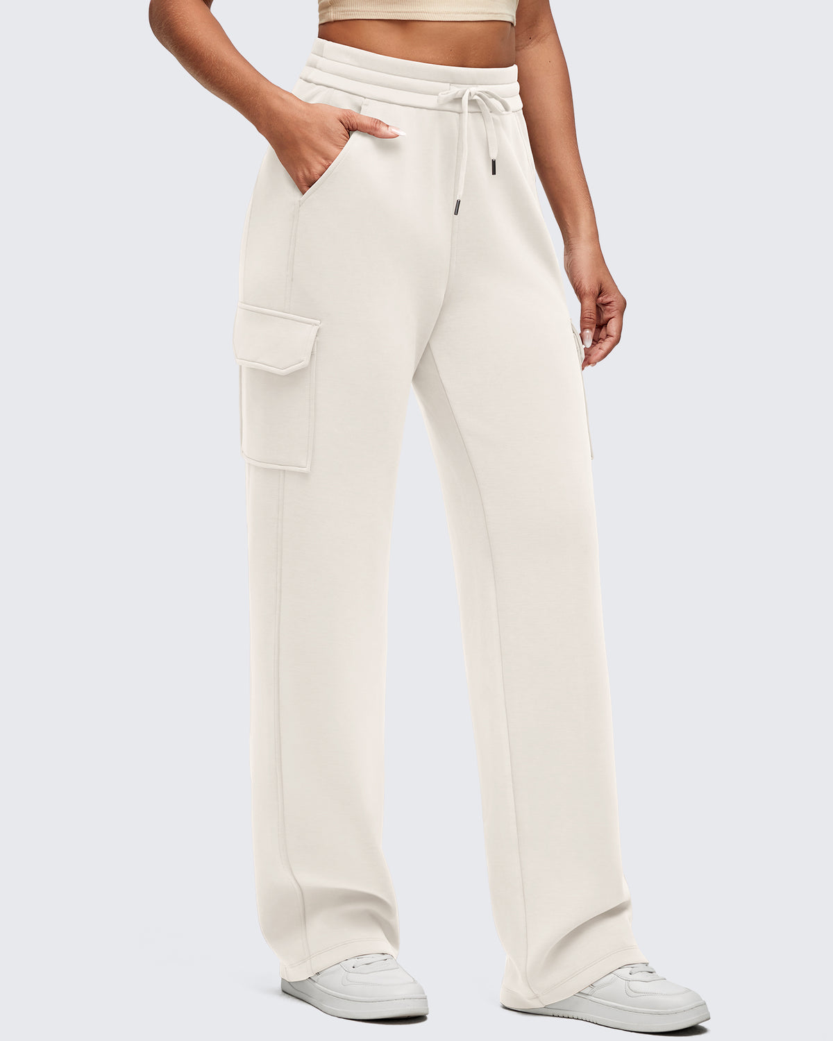 Freedom in every step. Wide-leg cargo sweatpants with a drawstring waist—designed to move as you do.