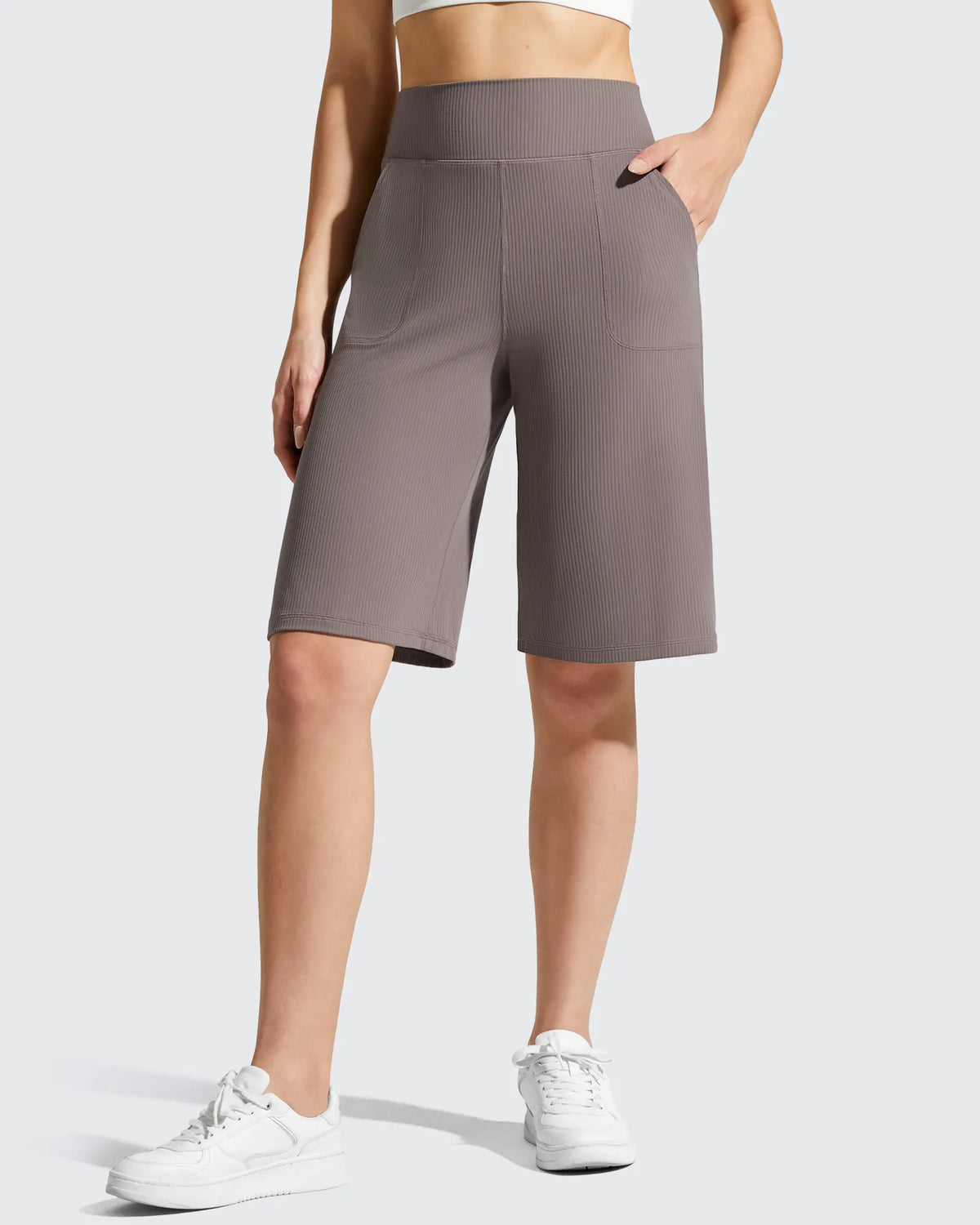 Ribbed Bermuda High-Waist Knee Length Shorts 11''