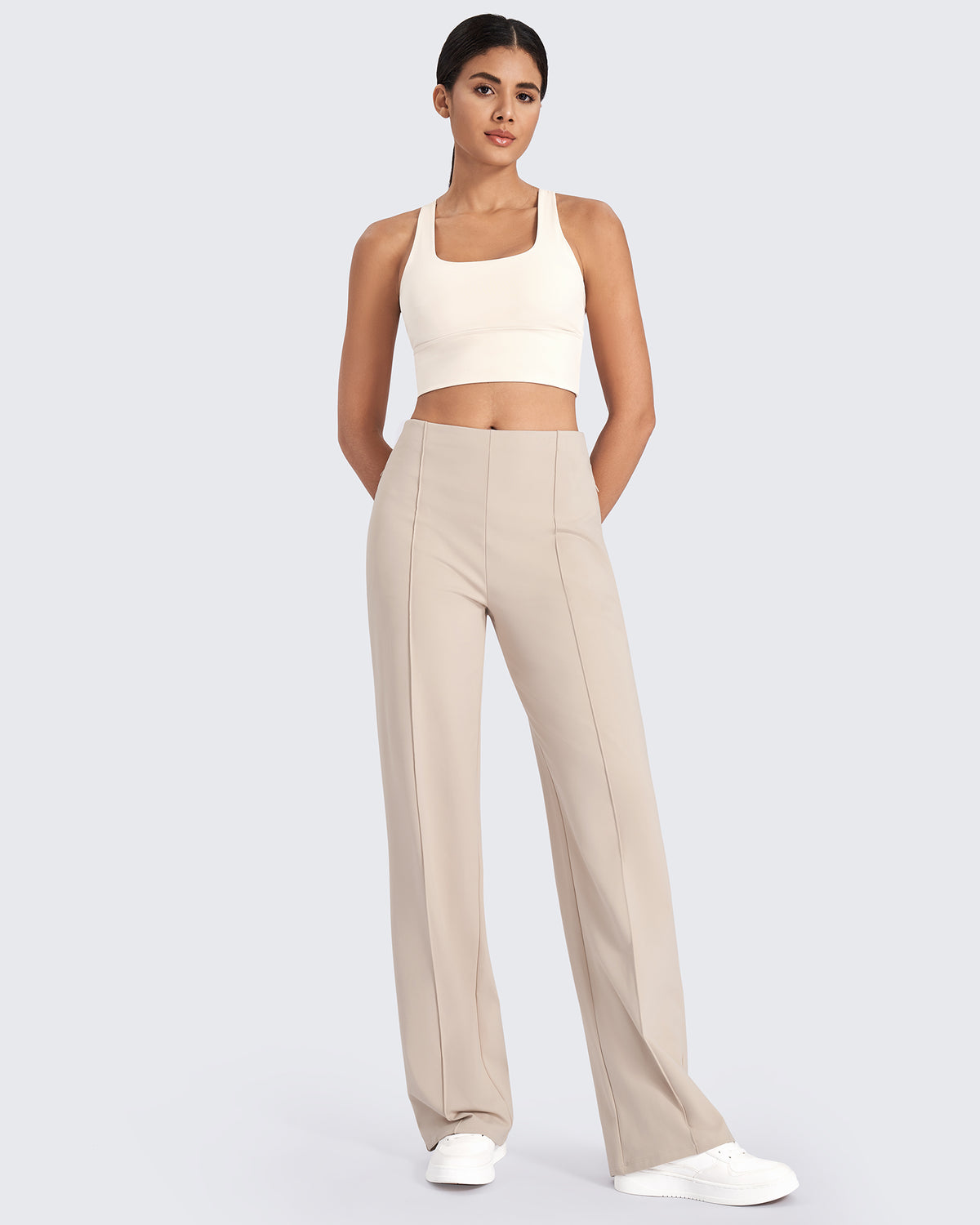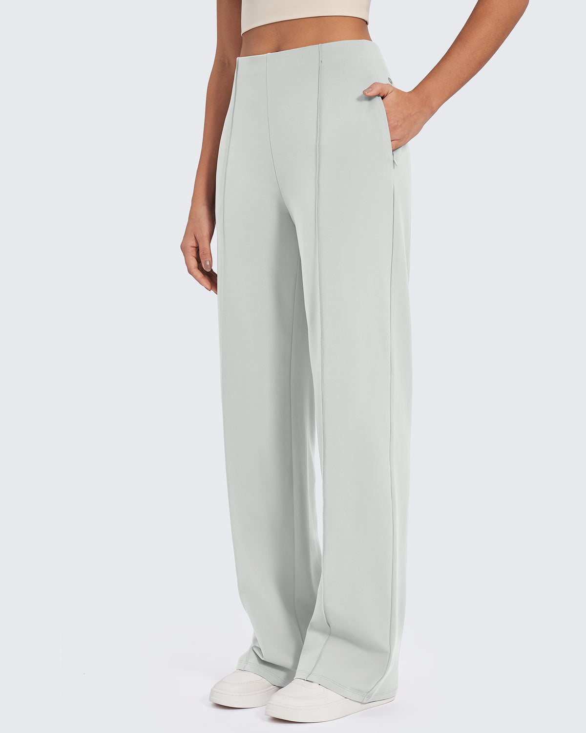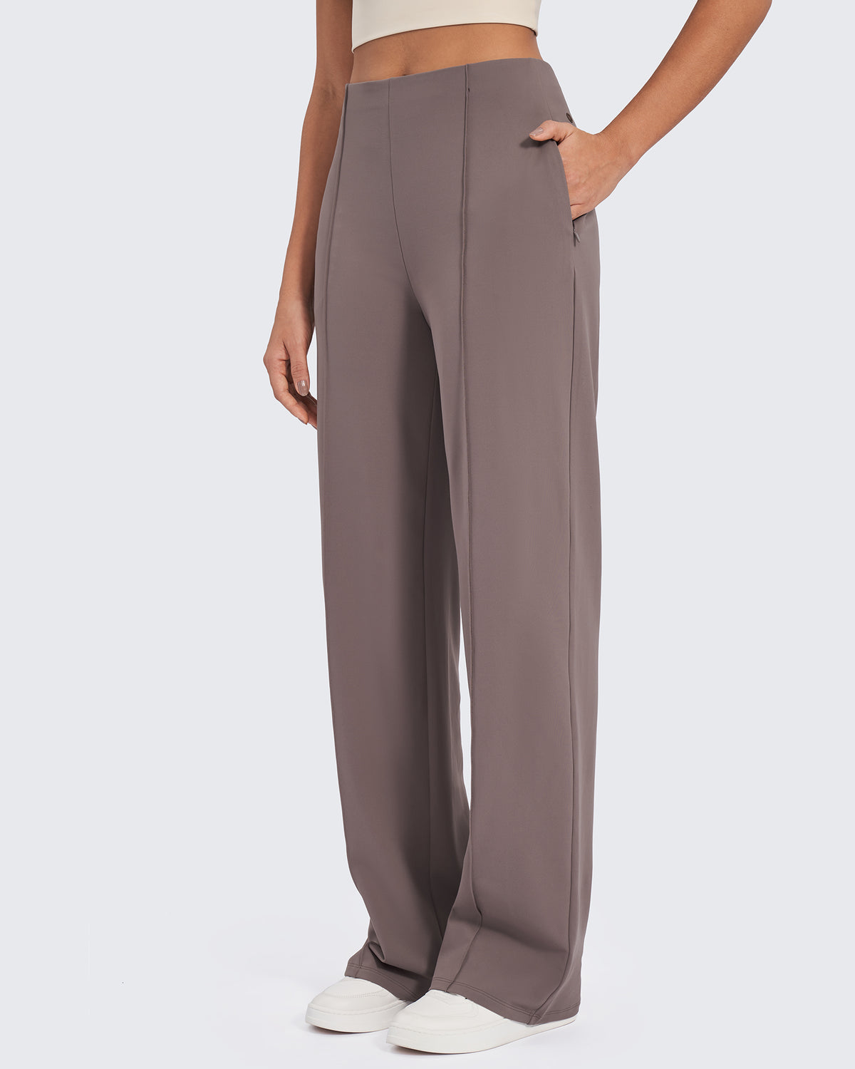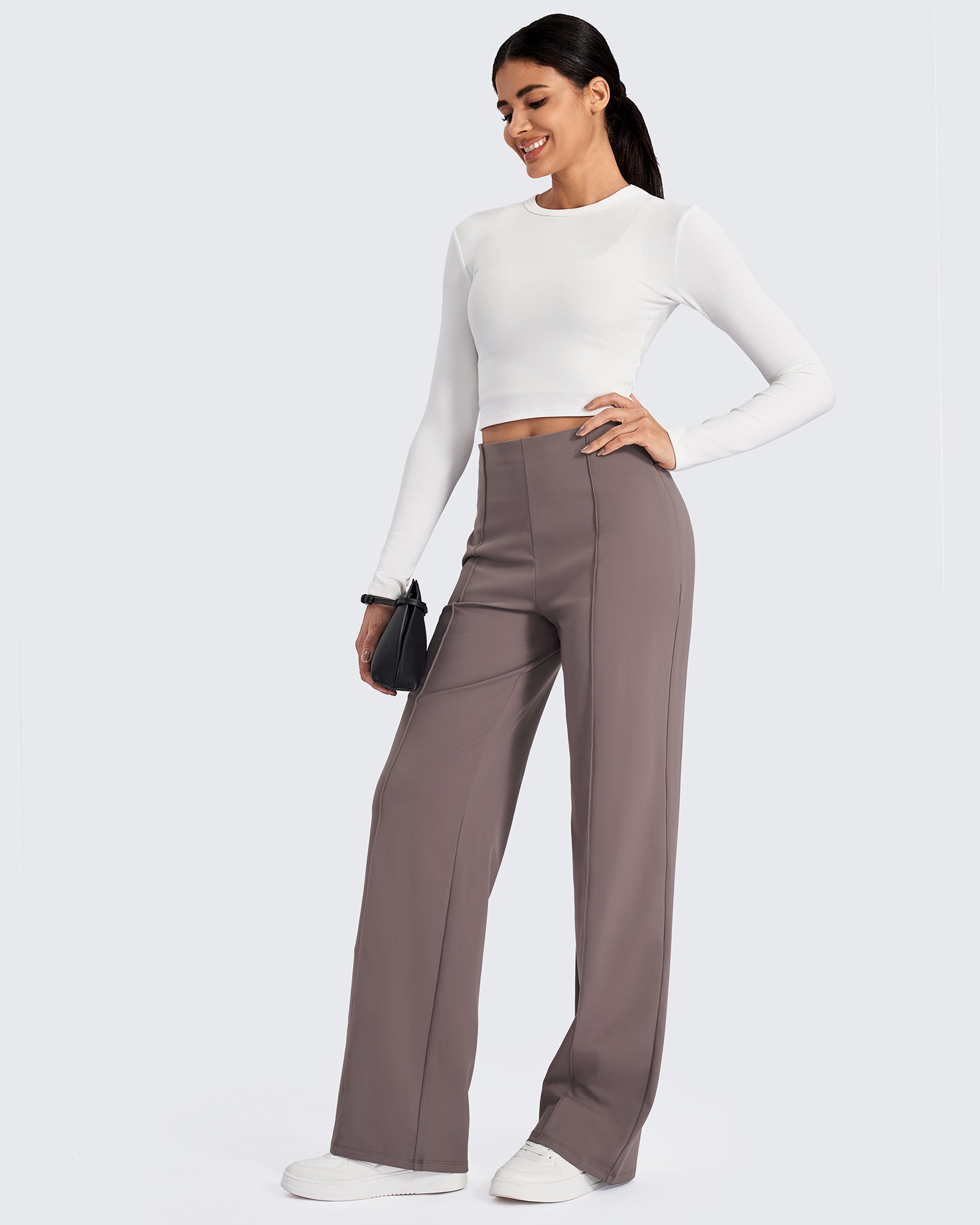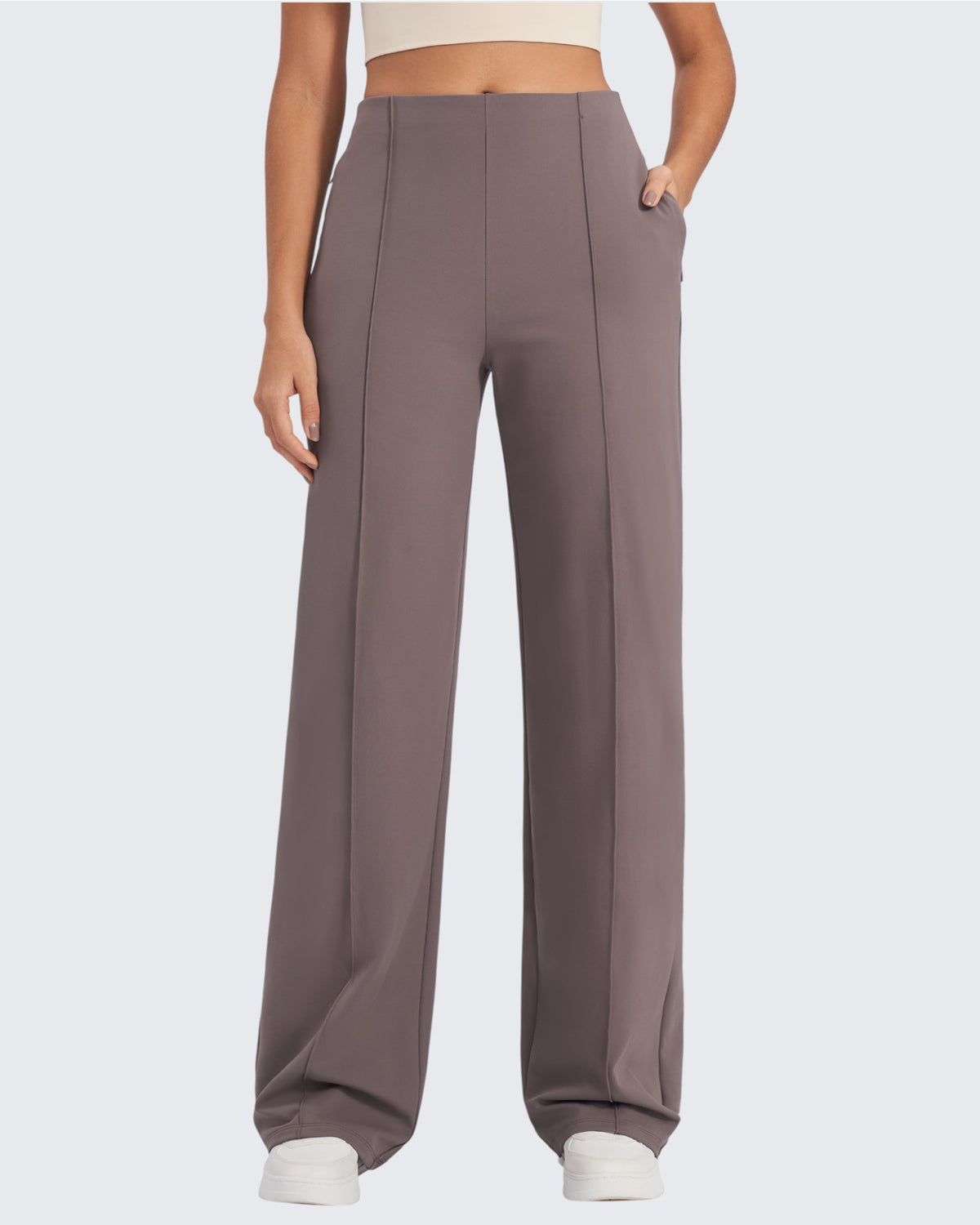 Office polish. Weekend comfort. These wide-leg pants feature classic front pleats, a high-rise waist, and flowy fabric, delivering tailored style.
