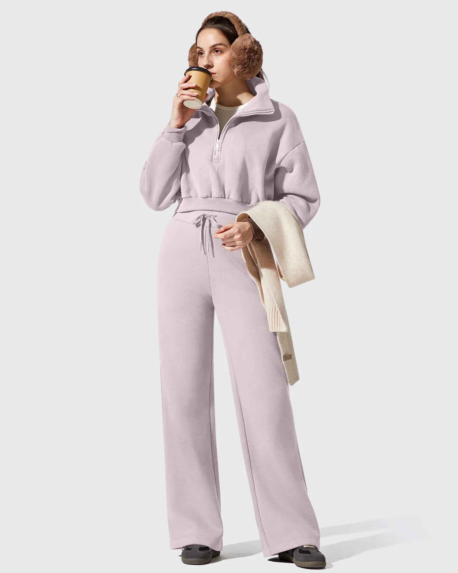 Cotton-touch fabric with a plush fleece lining keeps you comfortably insulated in cold weather.