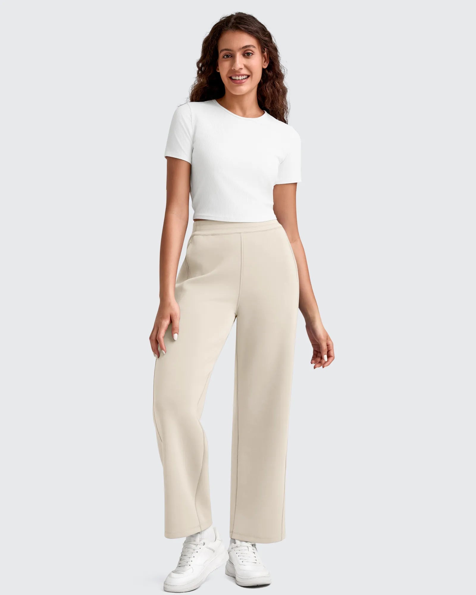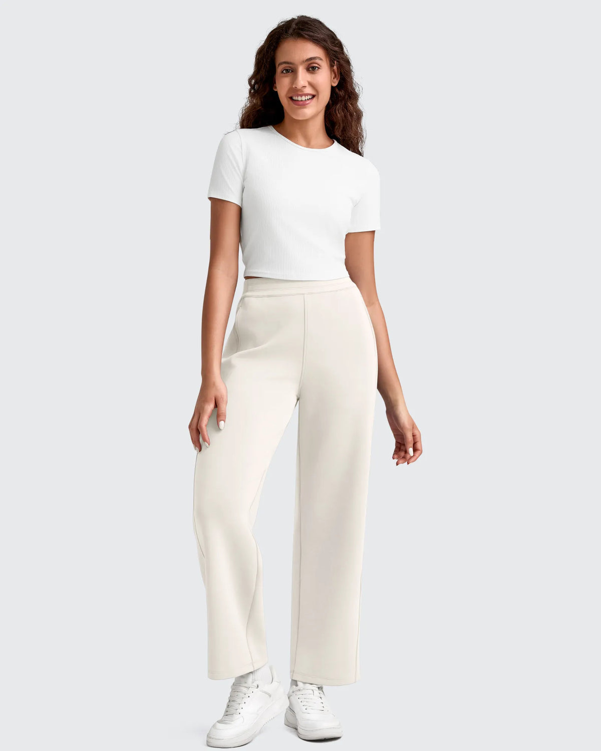 Smoofit Elastic Waist Wide Leg Ankle Sweatpants